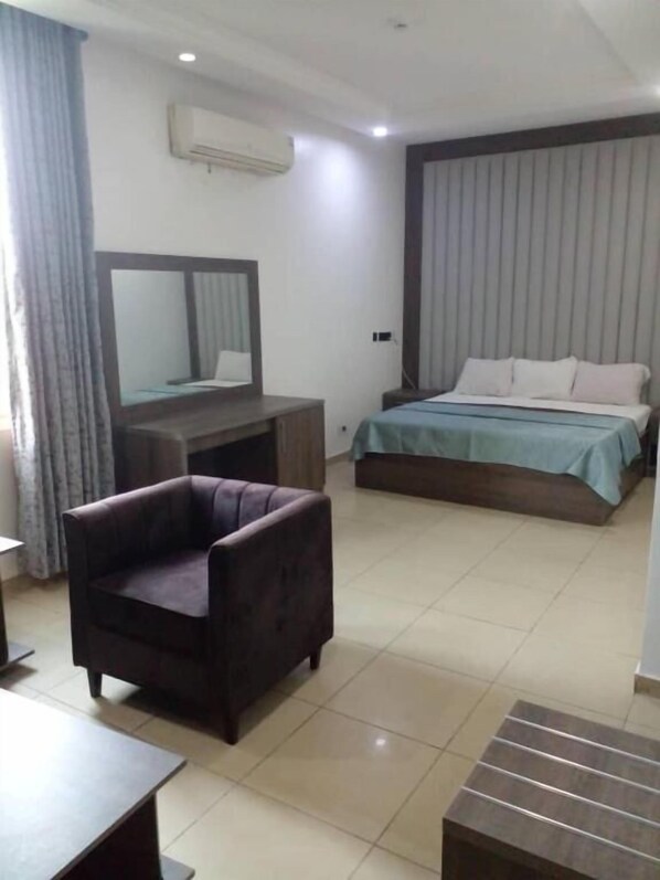 To begin talking about the room, the room does't have shawer faucet. A plastic bucket is placed in the bathtub instead. The AC does't blow cold air, the bed mattress is very old and uncomfortable, no elevator but diagonal stairs case that could drop someone on the floor if you don't hold on the rail and watch your steps carefully. Electricity goes off every few minutes and took them unacceptable time to turn on the generator. No customer service at all: I was struggling with my luggage coming down the urgly 18 stairs case while one of the hotel worker was stirring at my mistakes for booking a room at their Hotel. What a shame!