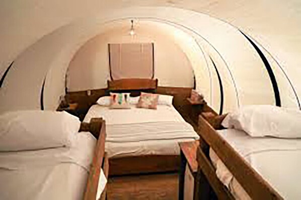 1. This wagon sleeps 4 (1 king bed and 1 bunk bed)