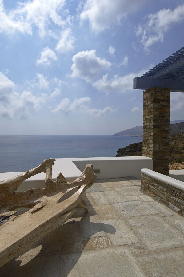 ビーチに直接アクセスできる、アンドロスのこのヴィラは、ピソ・ギャリアおよびギアリアビーチから徒歩 10 分圏内です。トゥリティス灯台およびアファニス ナフティスも 5 km 圏内です。