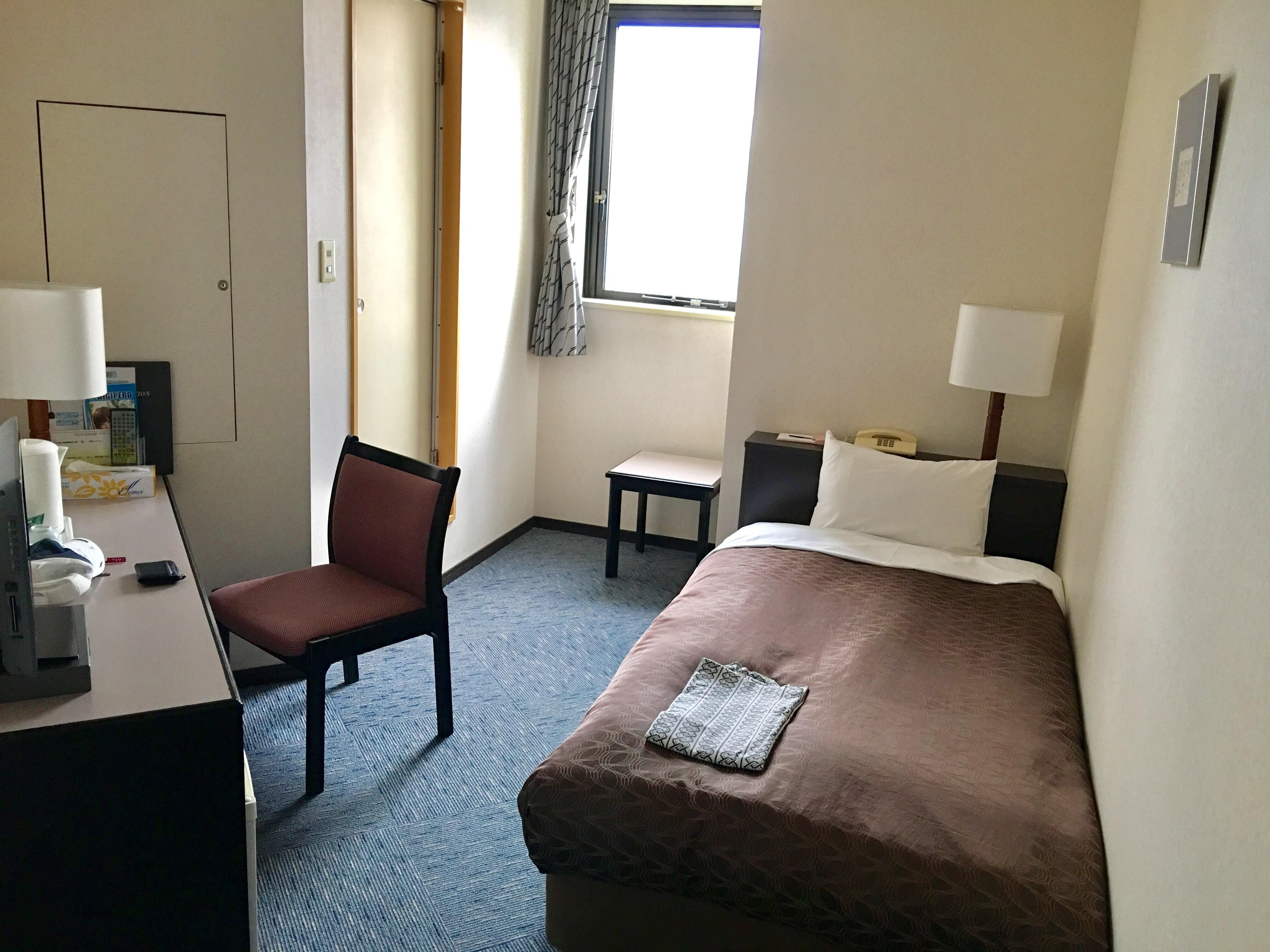 Booked at rather short notice and this was the cheapest budget hotel available. Near to the Asahikawa train station (10min walk). Basic business hotel. Saw many reviews about smoke smell and was initially worried but it was ok in the non-smoking room we booked; the smoke smell was present in the corridor outside the room and the ground floor lobby area. Breakfast was included in the room rate and we had a choice between udon noodles, natto with rice and curry rice.