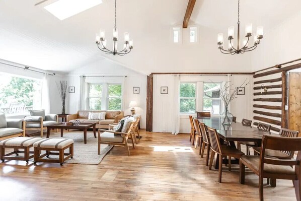 Escape to the mountains at this luxurious lodge, nestled among 4 acres of serene woodlands just 5 miles from downtown Asheville. Unwind around the outdoor fire pit or relax in one of two separate living areas and a fully equipped kitchen.