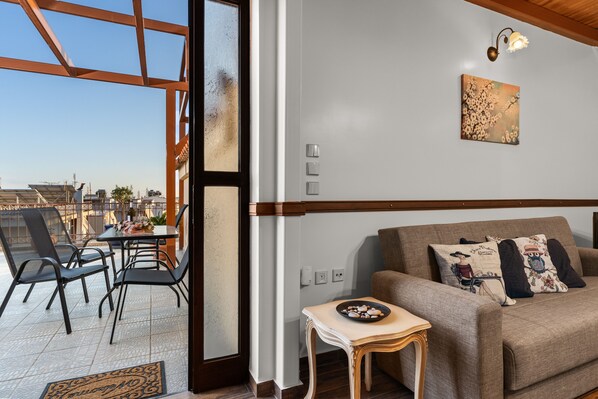This vacation rental features a shared open terrace for relaxed evenings.