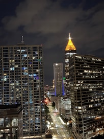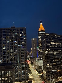 In the heart of downtown Atlanta, Peachtree Towers offers a chic retreat with upscale amenities. Relax on your private balcony overlooking bustling city activity or unwind in the spacious living area with plush sofas and a large flat-screen TV. This modern condo comfortably sleeps 4 guests and features a luxurious lobby, 24/7 concierge service, and easy keypad access.
