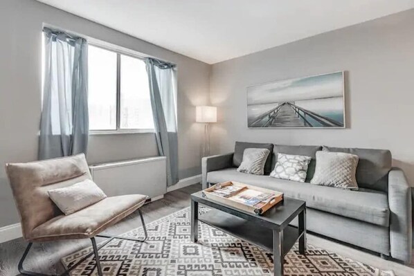 -- Spacious living room, 1 bedroom, and 1 bathroom