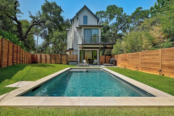 Welcome to beautiful Sultana in the heart of Tarrytown, less than 2 miles west of Downtown, Zilker Park, the University of Texas, and the State Capitol. Swim in the private pool, relax in the manicured backyard, stroll the beautiful tree-lined neighborhood, or hop in a rideshare to enjoy downtown Austin. Masterfully designed new construction and modern luxury are embodied throughout this gorgeous Tarrytown Treehouse. The home has 3 Bedrooms + 3.5 Bathrooms and can sleep up to 10 guests, perfect for family getaways and business travelers. The answer to modern living is revealed room by room, evoking a sense of excitement, elegance, and glamor. Located within walking distance to the new Cafe Medici at Windsor and Winsted—minutes to retailers, restaurants, and nightlife. Hop on the West Enfield Greenbelt and ride your bike to the Ladybird Lake Bike Trail. You'll book next year's trip before you leave once you've experienced Sultana!