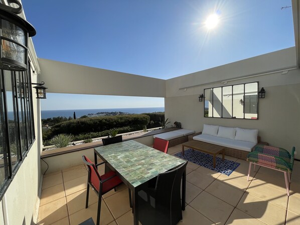 Magnificent sea-view! 70m2 design apartment, big terrace, pool, extras included