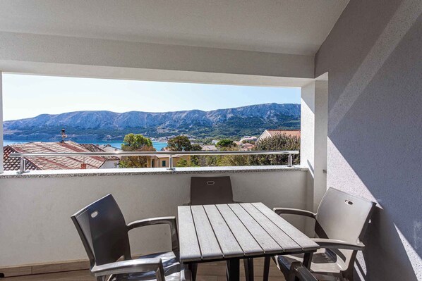 バスカにある家具付きバルコニーを備えたアパートメント