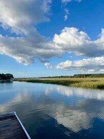 The view off the deck is absolutely stunning! Egrets, magpies, gulls, and of course fish. The men on our trip enjoyed fishing off the dock well into the night as the area was so well lit. There was a paddle board and canoe. We enjoyed morning coffee on the deck which wrapped around the home to an area with 2 lovely rockers. Pool and hammock was a plus. Plenty of space. Location was ideal for a quick ride to Beaufort or Port Royal. State park with nature center, light house and a fishing pier. Dockside restaurant is a must! Owners VERY responsive to our needs.