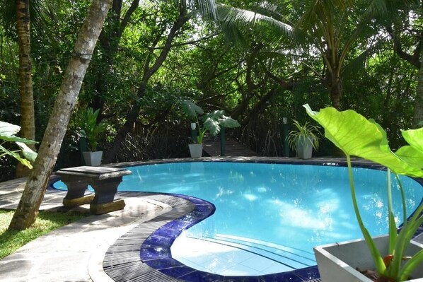 屋外プールを備えたビーチサイドのゲストハウス