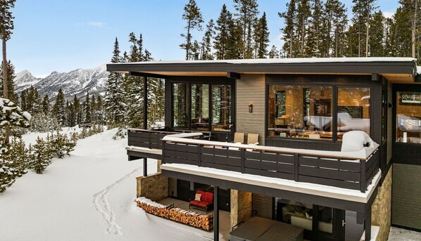 Two primary bedrooms each feature private fireplaces and spa-like en suite bathrooms, creating a serene retreat after a day of exploring. Nearly every bedroom includes a private balcony or patio, allowing you to step out and breathe in the crisp mountain air at any time. For those with accessibility needs, a full-house elevator is available—just let our team know ahead of time so we can ensure it’s on and ready for your stay. Whether you're cozying up around the fire pit on the deck or simply admiring the craftsmanship throughout the home, Eagleview offers a truly elevated Big Sky experience.