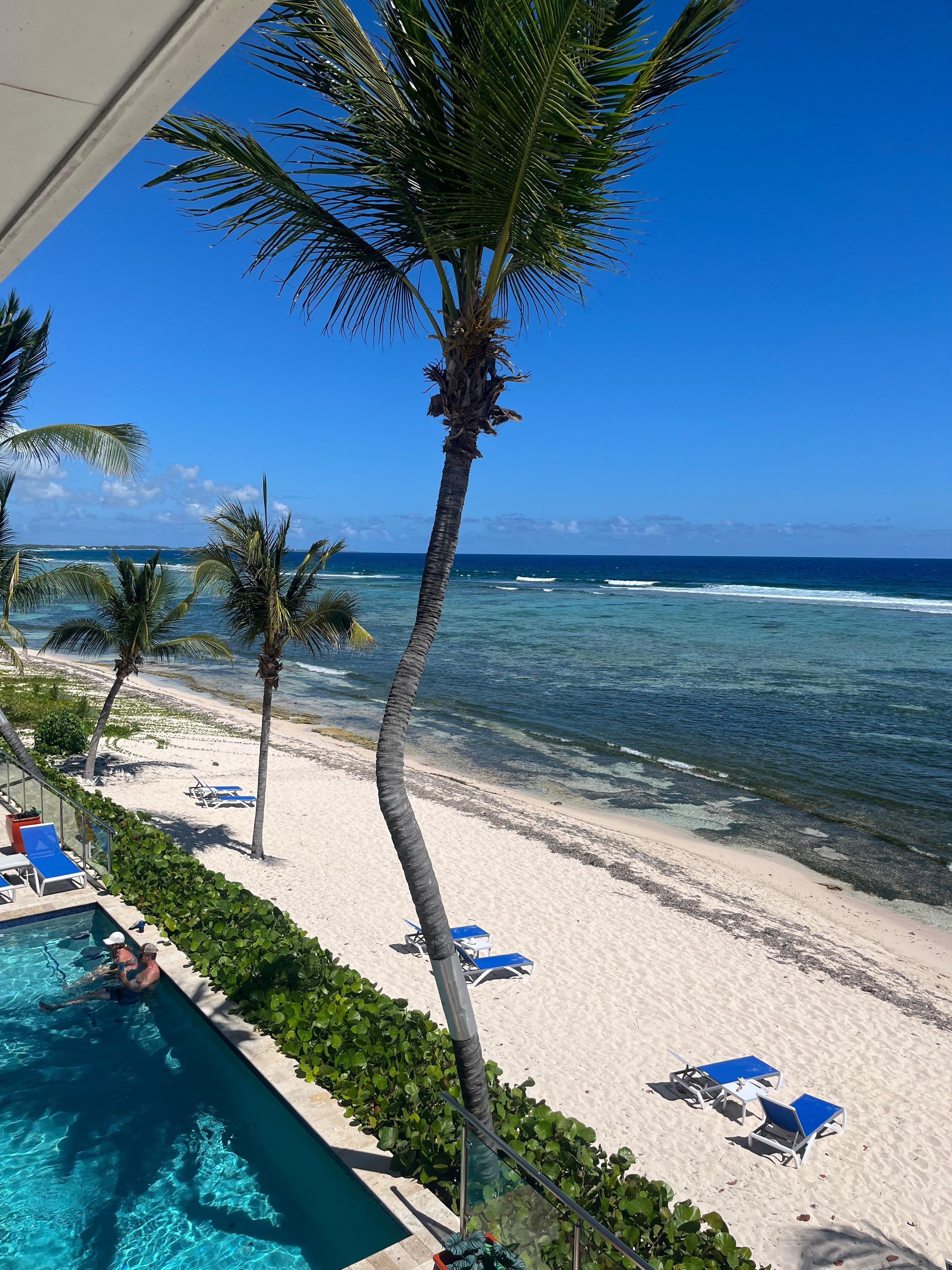 This place is amazing! Not in a busy area of the island, which means you have the whole beach to about 10 people or so, at timesA gorgeous view, with the reef right off shore. Great for snorkeling enthusiasts! We love the bbq grill as an option for cooking. We love the private patio that provides shade- some places do not have an overhang but this is a great reprieve from the strong sun. You can walk 1 Mile west on the beach and .75 mile east , until it turns rock ledge. You can grab food on the beach at grapeTree cafe. Great conch fritters!The air conditioning worked great and if we left for the day we actually turned it off and then back on upon arrival and the room never got too hot. We love the washer and drier for washing the towels and beach clothes.