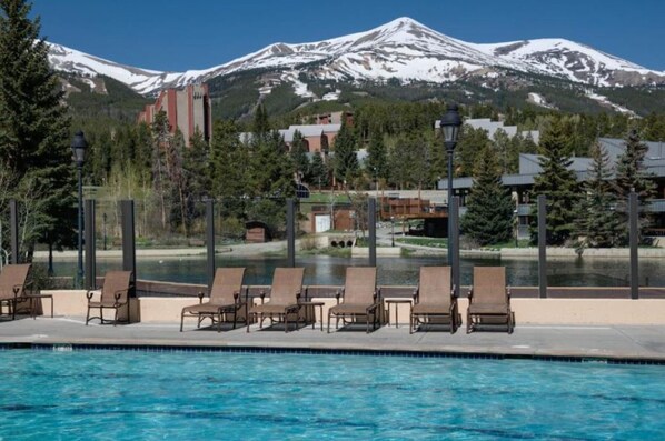 7 outdoor hot tubs and a large heated pool with stunning views of the Breckenridge slopes and Ten Mile Range.