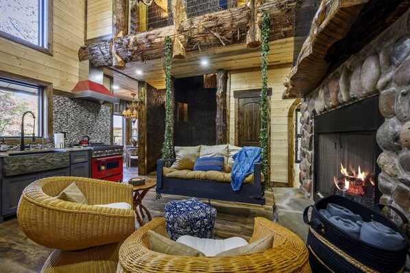 Treetopia Treehouse!Waterfall!3Story Slide!OutdoorBed!Nest Hottub!Sauna!
