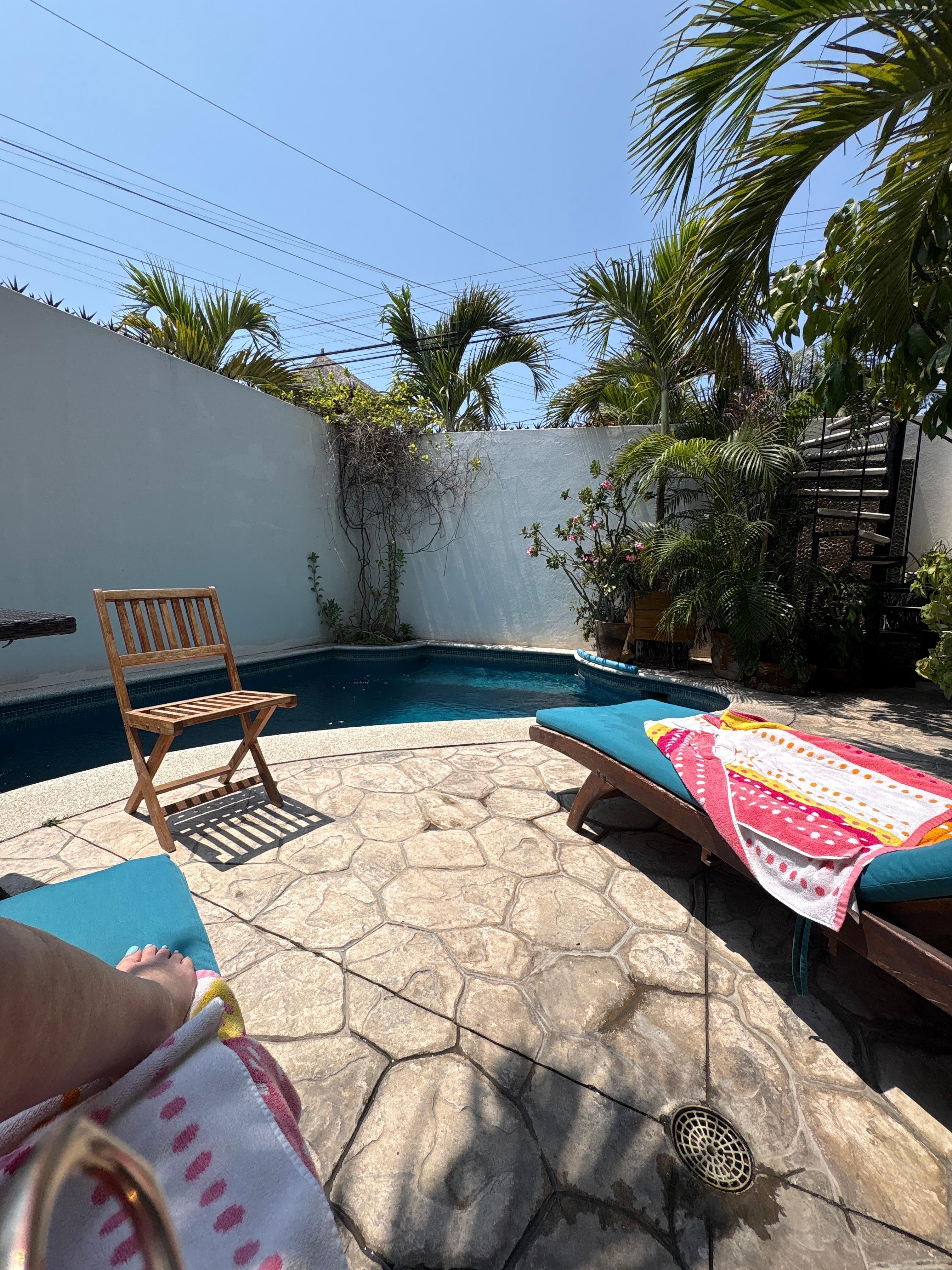 I couldn’t picture where it was as I’ve never stayed in Bucerias before. It took a minute to get my bearings. Everything you need is within walking distance. We used Uber to go further. Air conditioning Very nice to have. We stayed in bottom unit and pool was right outside our door. It is shared with renters above. We had no issues. Felt safe at the rental and anywhere walking. The area is beautiful