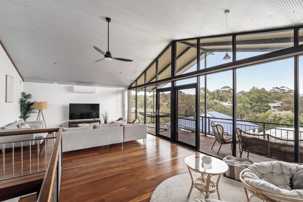 The light-filled living area boasts reverse-cycle air conditioning, creating year-round comfort, while the open-plan kitchen is equipped with premium appliances for shared meals and conversations. The deck and backyard, complete with a BBQ and hammock, are ideal for al fresco dining or unwinding with a good book.