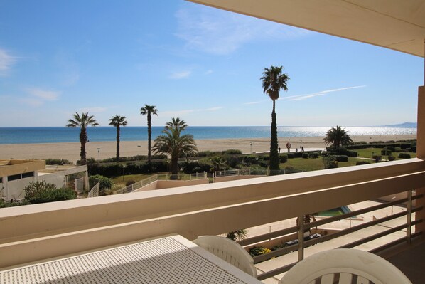 Belle vue sur la mer et la plage. La piscine bien entretenue est un plus si trop de vent sur la plage. Résidence calme et très bien située, avec les commerces à proximité. A recommander.