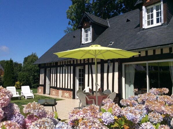 カヌヴィルにあるキッチンとパティオを備えたバケーションホーム