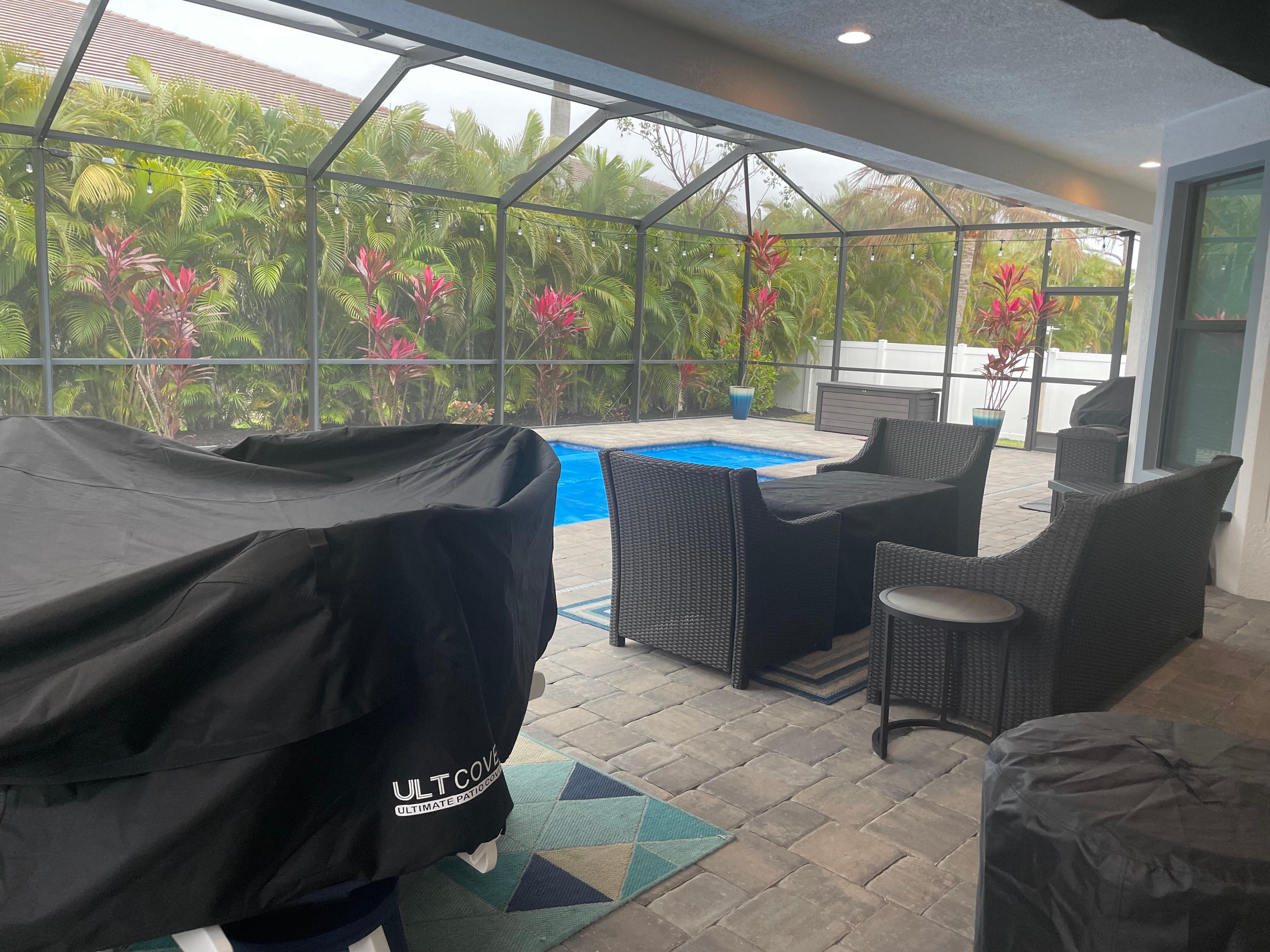 Pool/Lanai: You will no doubt spend most of your time by the pool! Villa Alexandria's large lanai features an electric heated pool. Fire up the convenient gas grill and BBQ some steaks for an exciting family dinner and eat at the dining table by the pool with room for four. Enjoy the separate lounge area with plenty of seating for your friends and loved ones, which we are sure you will call your own tropical retreat. It is a perfect area for entertaining or just sitting back and relaxing.