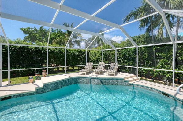 Delightful pool bungalow in Cape Coral, close to beaches, airport, kid friendly