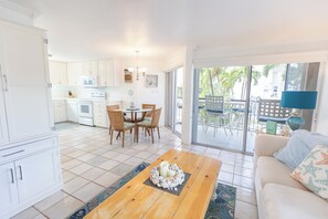 The condo features a spacious and open-concept living and dining area, perfect for relaxing after a day in the sun. The fully equipped kitchen provides everything needed for home-cooked meals, while the screened-in patio offers a serene setting to enjoy morning coffee or evening cocktails with breathtaking views of the pool and the Caribbean Sea.