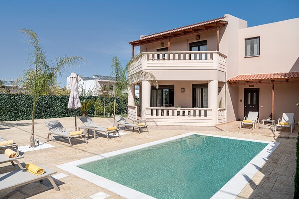 ハニア中央市場に近く、季節限定屋外プールを備えたファミリー向けヴィラ