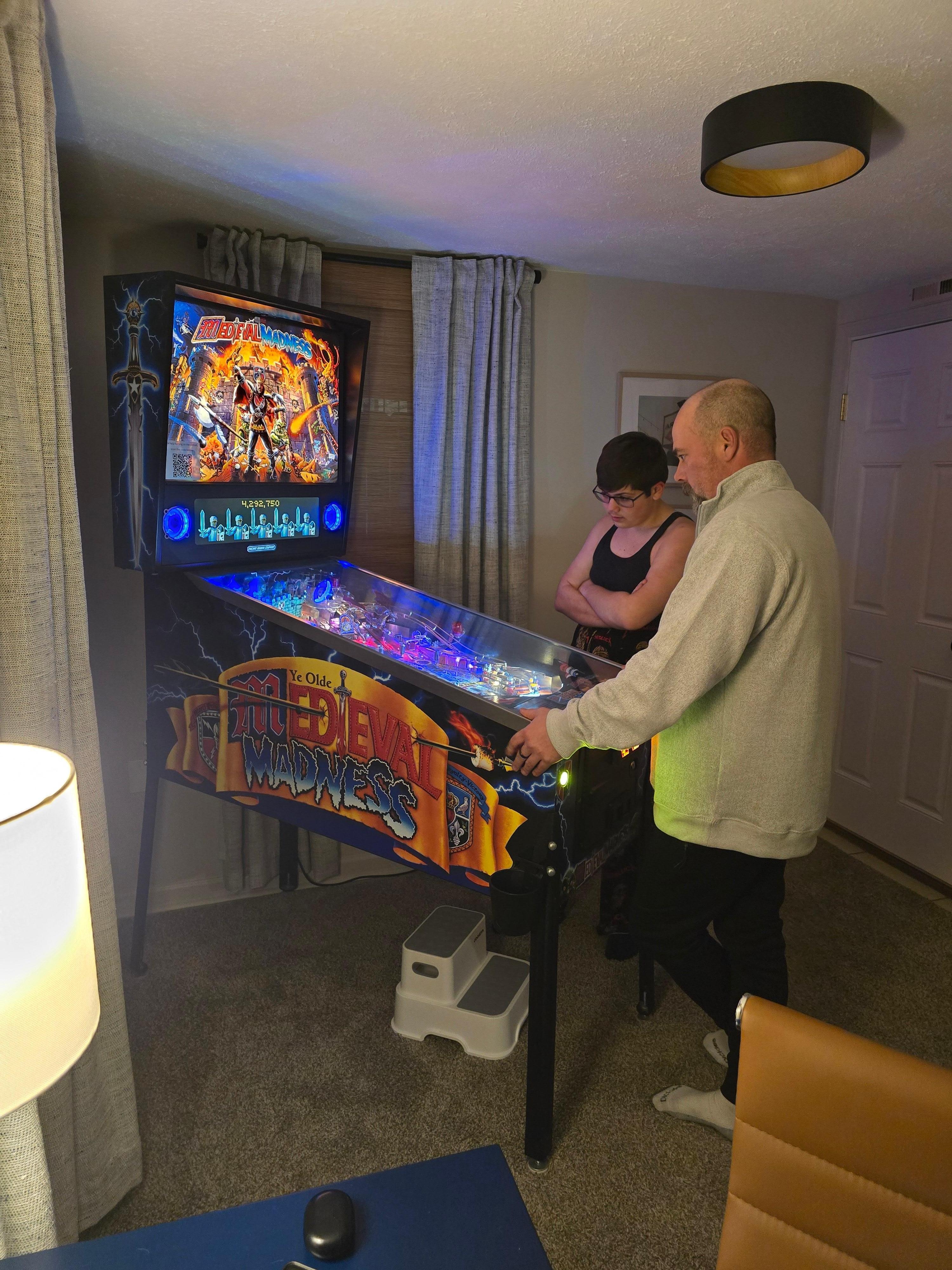 - Game room with 60 game cocktail arcade and pinball machine