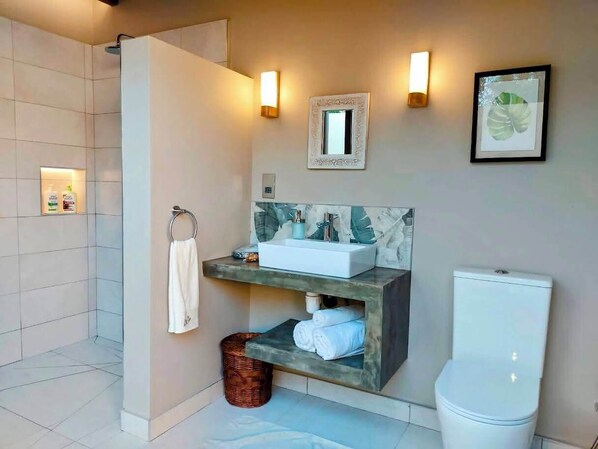Coconut Lodge / Inside and Outside shower, infinity pool