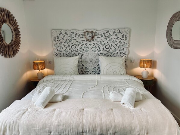 • Master suite with king-size bed (180x200), walk-in closet, and private bathroom—a truly intimate, comfortable space.