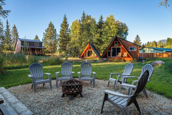 Being only 7 miles from west Glacier was great. The yard was super relaxing where we had a fire each night after a in day in the park. The grocery store is only 3 miles away in Hungry Horse. There are several restaurants within walking distance plus a distillery. Even though highway 2 is right there, it’s super quiet as traffic stops when it gets dark. The kitchen is well stocked and there are several neat books to read during our stay. We are our meals on the porch which was great. Although no AC or heat, the house held the temps well. There is a wood burning stove but we never needed even with morning temps in the upper 40s.