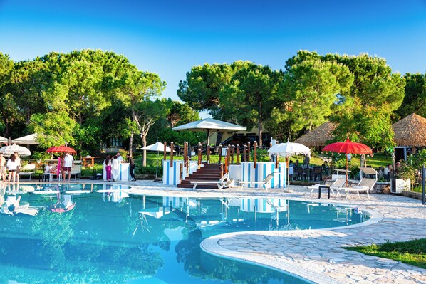 Travelers soak in the Italian lifestyle at this upscale retreat featuring an infinity pool, comfortable sun loungers, and delicious meals worth savoring