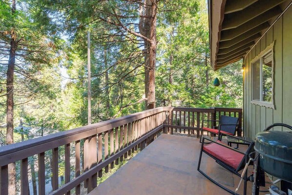 Tranquil dog-friendly cabin with fireplace, kitchen, balcony, grill, & patio