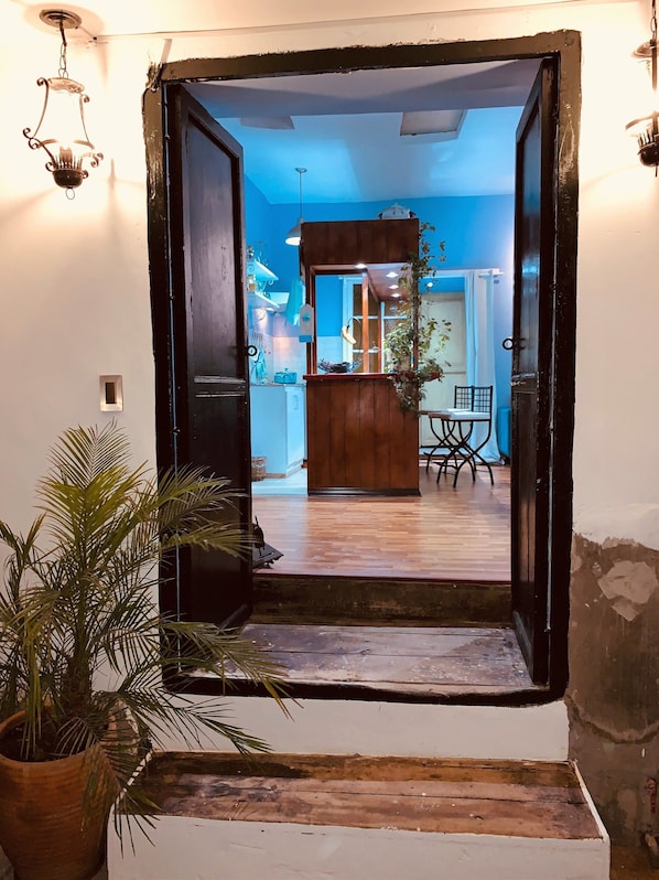 500年以上前の植民地時代の家の2階にあるミニアパートメントには、キングサイズのベッド、スマートテレビ、フルバスルーム、小さな部屋があるアメリカンスタイルのキッチンがあります。 すべてのスペースはリサイクルする傾向のあるビンテージスタイルで細かく装飾されています。フルーツバスケット、タオルホルダー、錬鉄、バスルームランプは自転車のリングで作られています。