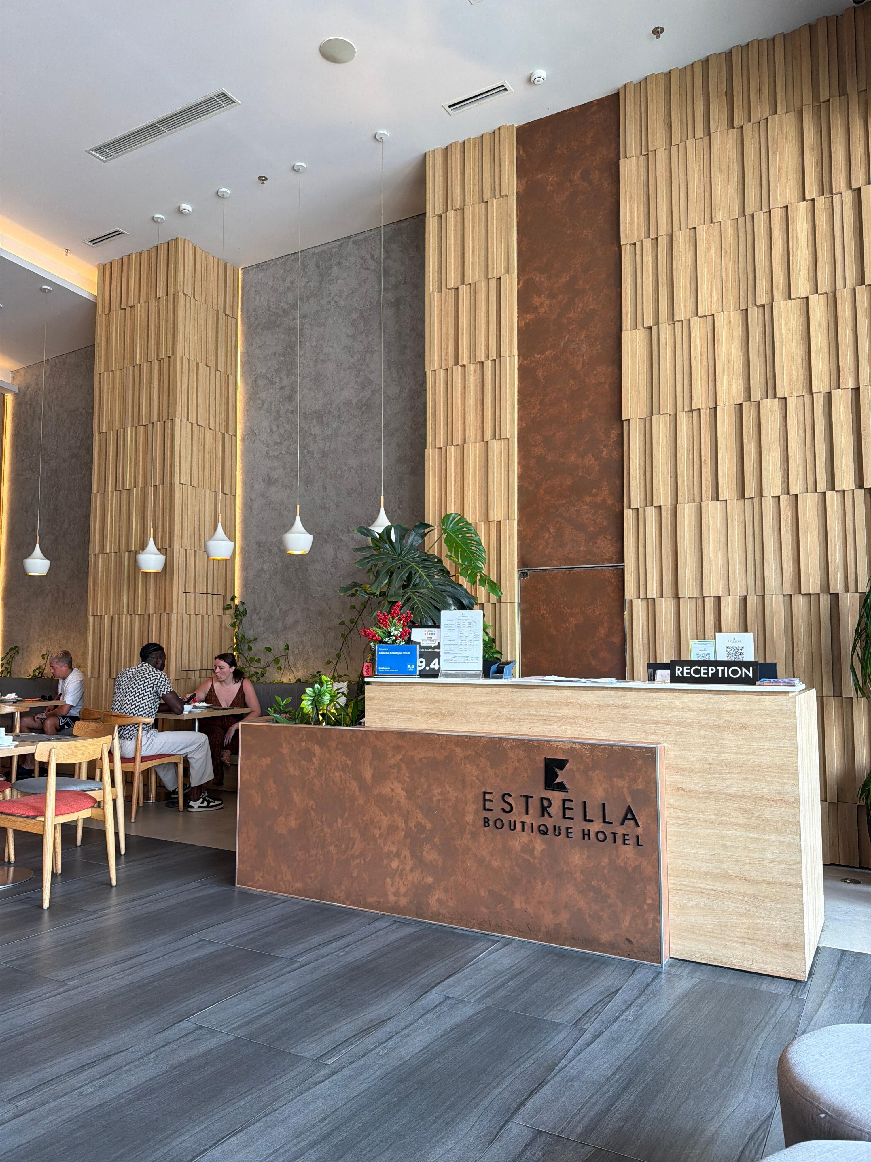 We stayed at Estrella for 12 nights. The hotel design is modern and very comfortable. The staff are very polite and helpful and they are working very hard to maintain a high standard for their hotel. The location is good. It is not too far from the beach and there are lots of good restaurant within the walking distance.