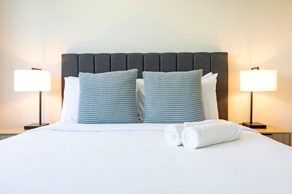 Experience ultimate comfort in our thoughtfully designed bedrooms, where luxurious beds draped in premium linens invite you to relax and unwind. Generous storage space ensures your belongings are neatly organized and effortlessly accessible, enhancing both convenience and tranquility.