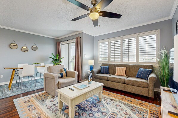 Cozy coastal condo with full kitchen, private washer/dryer, close to beach