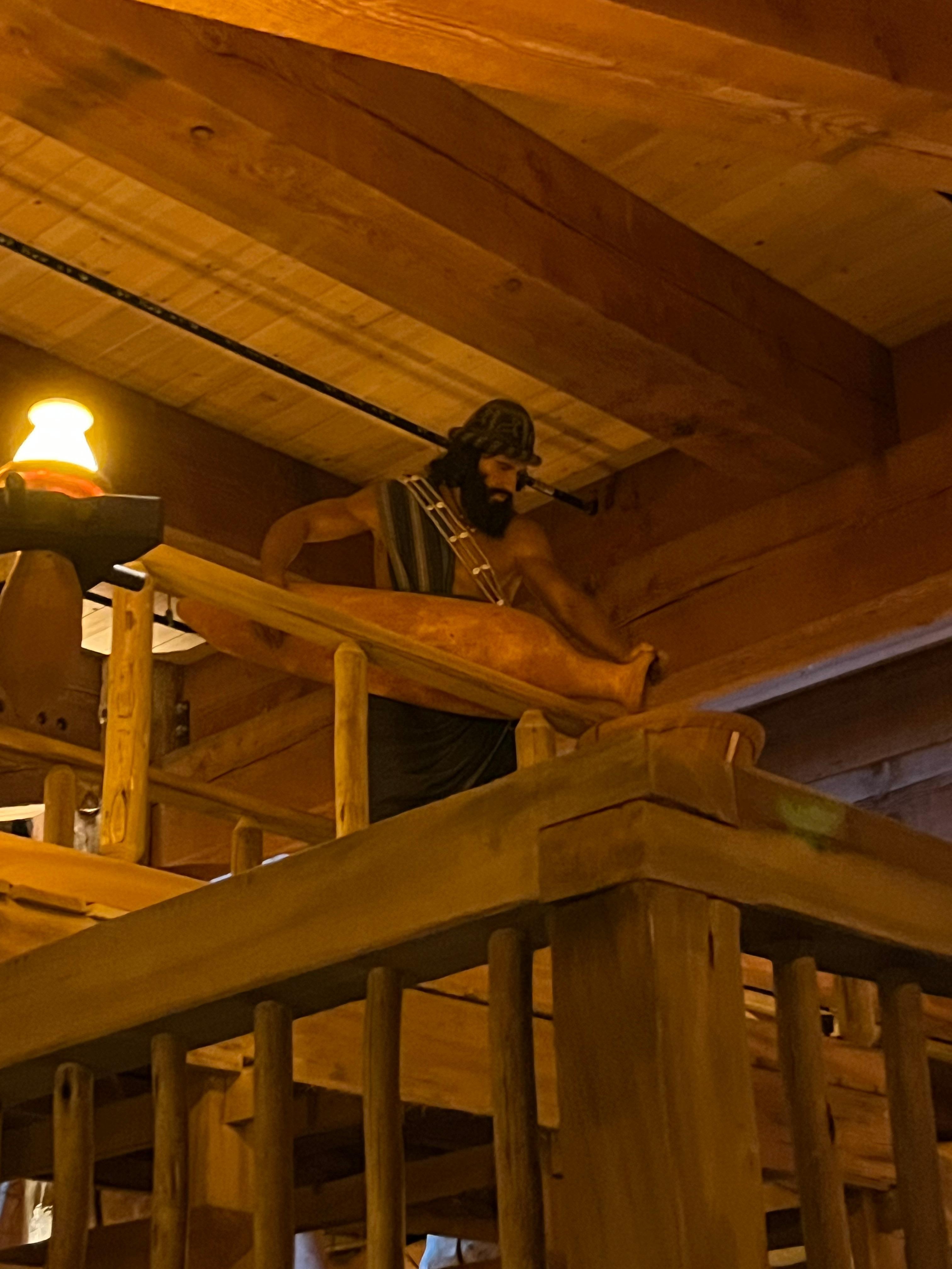 While the landscaping is slowly moving forward (this is a small family run business), the inside is not waiting for anything. As you step into the cabin, you are surrounded by wood. Wood walls. Wood ceiling, and a large timber wooden ladder that leads up to the loft. The whole atmosphere makes you want to settle in a stay a while.