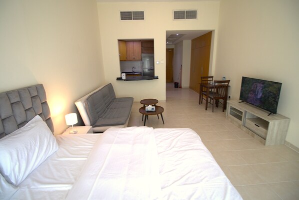 Escape to this delightful apartment in picturesque Dubai. With a cozy bedroom, a well-equipped bathroom featuring a relaxing bathtub, and essential amenities like WiFi and AC, our place will help you feel at home while you're traveling in Dubai.