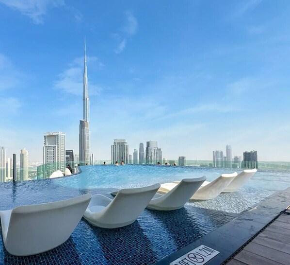 ✔ Rooftop infinity pool for adults, additional kid's splash pool with Sea and Burj Khalifa views. Up to 6 people can use the pool ( strictly limited to 4 adults and 2 children under the age of 14.) ✔ 5-star hotel restaurants ✔ 24/7 security ✔ Elevator ✔ 24-hour Self Check-In ✔ Fully equipped gym ✔ Fitness area ✔ Building lounge with seating area ✔ Lobby lounge ✔ High-Speed Wi-Fi ✔ AC ✔ Washer/Dryer ✔ Iron/Board ✔ Free Parking