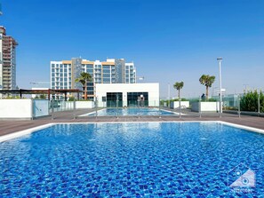 Stylish 1BR With Balcony in Azizi Riviera provides a terrace and more.