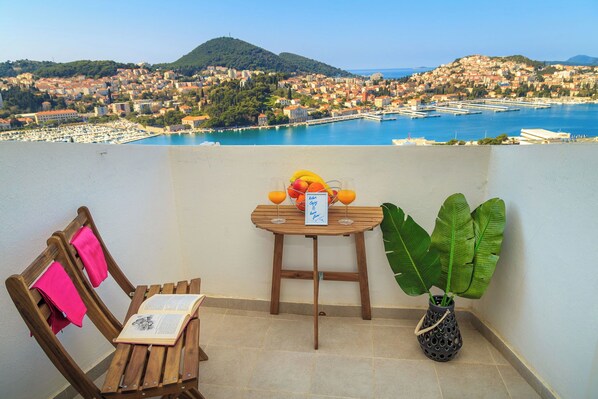 This is a nice apartment overall. Its a bit small. Old town is a long walk on a busy road in the hot sun. You better like steps...there are 238 of them from the seaside bus connections and restaurants to the apartment. You can Uber into town; that's very easy for about $5. There is only one small bathroom. The shower has no curtain, so everything in the one bathroom gets wet, especially the carpet (easily fixed! Why?). There is no air conditioning in the bedrooms, so they can get warm at night