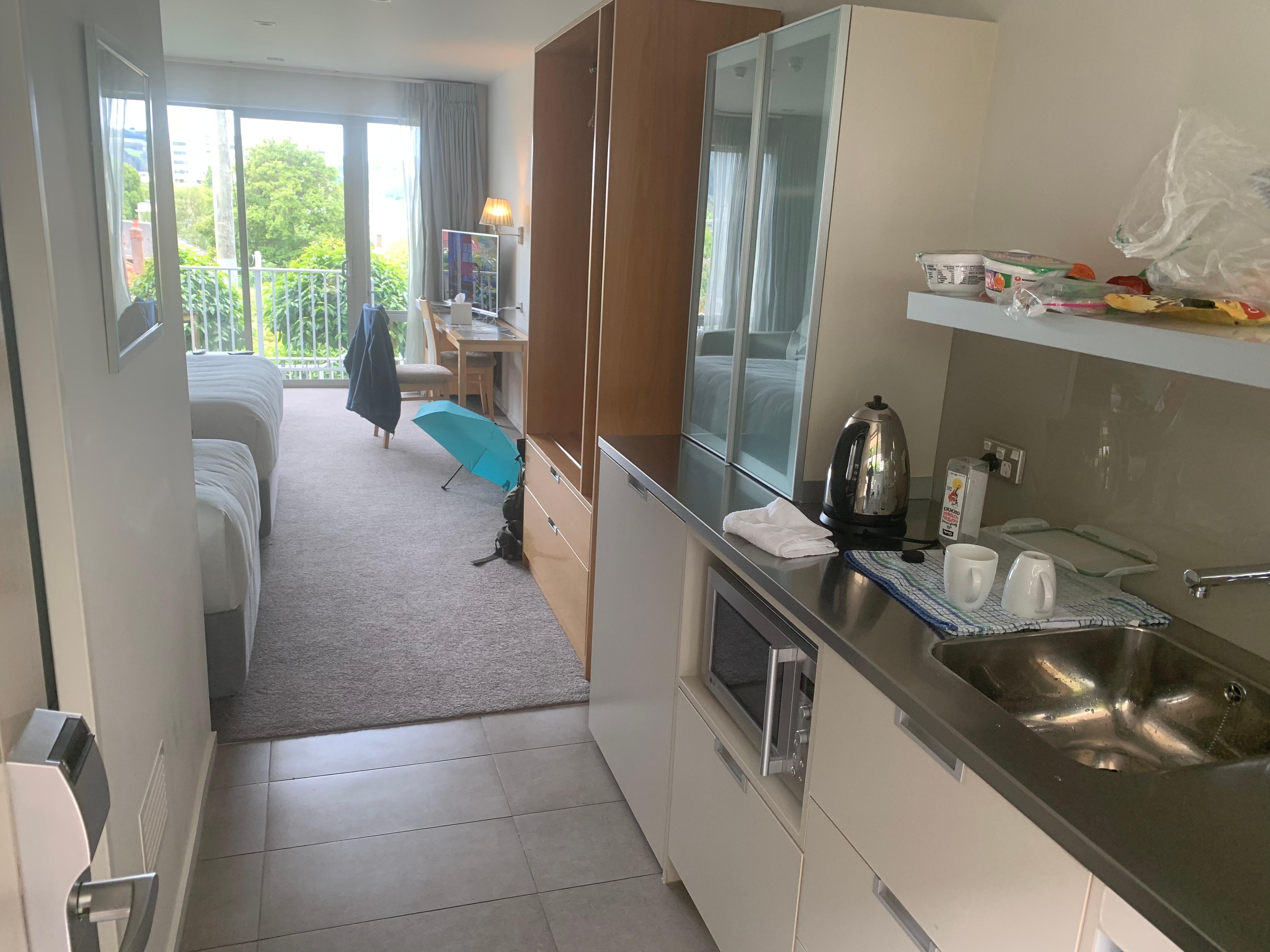 部屋が清潔でジャグジーも利用できて快適に過ごせた。簡易調理場でコンロがないのは残念。 洗濯機については、日本人にとって理解が難しいので代表的な洗濯行程の例が有ればよかったと思う。