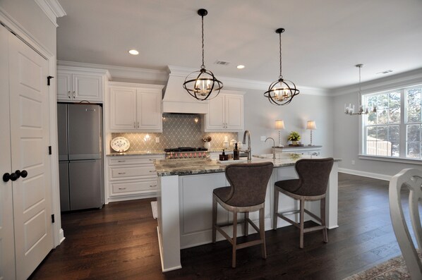 A fully equipped kitchen for meals, drinks, and Masters-themed gatherings