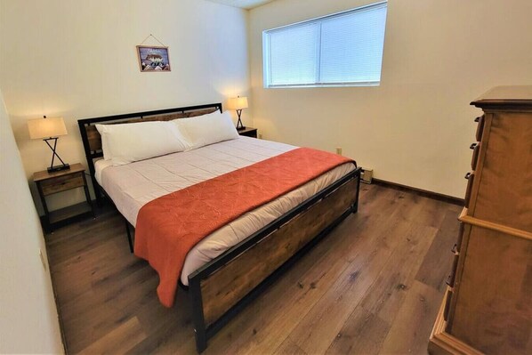 Bedroom 1 has a California King bed