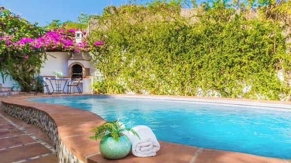 However, the most spectacular features of this villa are to be found on the outside. In fact, it is here where you and your family will spend most of the time, and it is no wonder why! First of all, you can cool yourself down in the private pool during the sunny days of the Andalusian summer. Then, you can sunbathe on the sun loungers provided and reach the rooftop terrace to revel in the magnificent views provided. Lastly, enjoy the most delicious specialities in the porch and drinks around the outdoor dining area, while the Andalusian breeze gently touches your skin. You will find that peace is a stone’s throw away from two of the most picturesque white towns of Andalucia, right at this spectacular villa.