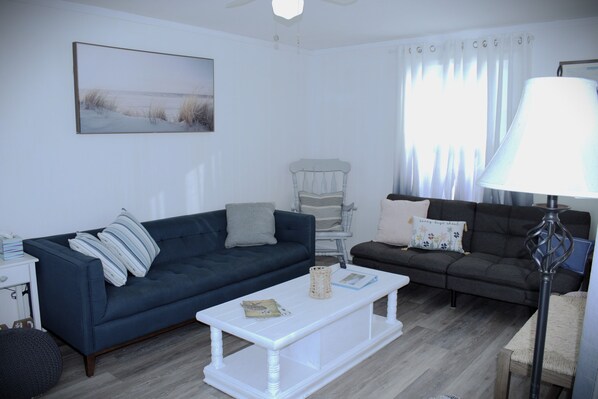 Tranquil Tides Retreat is nestled along HWY 12 in an excellent central location, placing you mere minutes to public beach access points, local restaurants, state parks, marinas and much more. This newly remodeled cottage is clean, fresh, and inviting. Linens are provided, along with a starter kit of basic necessities (toilet paper, dish soap, paper towels etc.). The friendly local grocery stores, dollar store, bakeries and gas station are just a quick drive away. Enjoy the spacious backyard under the spreading island oak trees, relax on the sunny porch with a good book, fire up the grill and unwind! Cape Hatteras is one of the most unique areas in the world. Tranquil Tides Retreat provides the perfect home base to make your Outer Banks vacation a fun and memorable family getaway!
