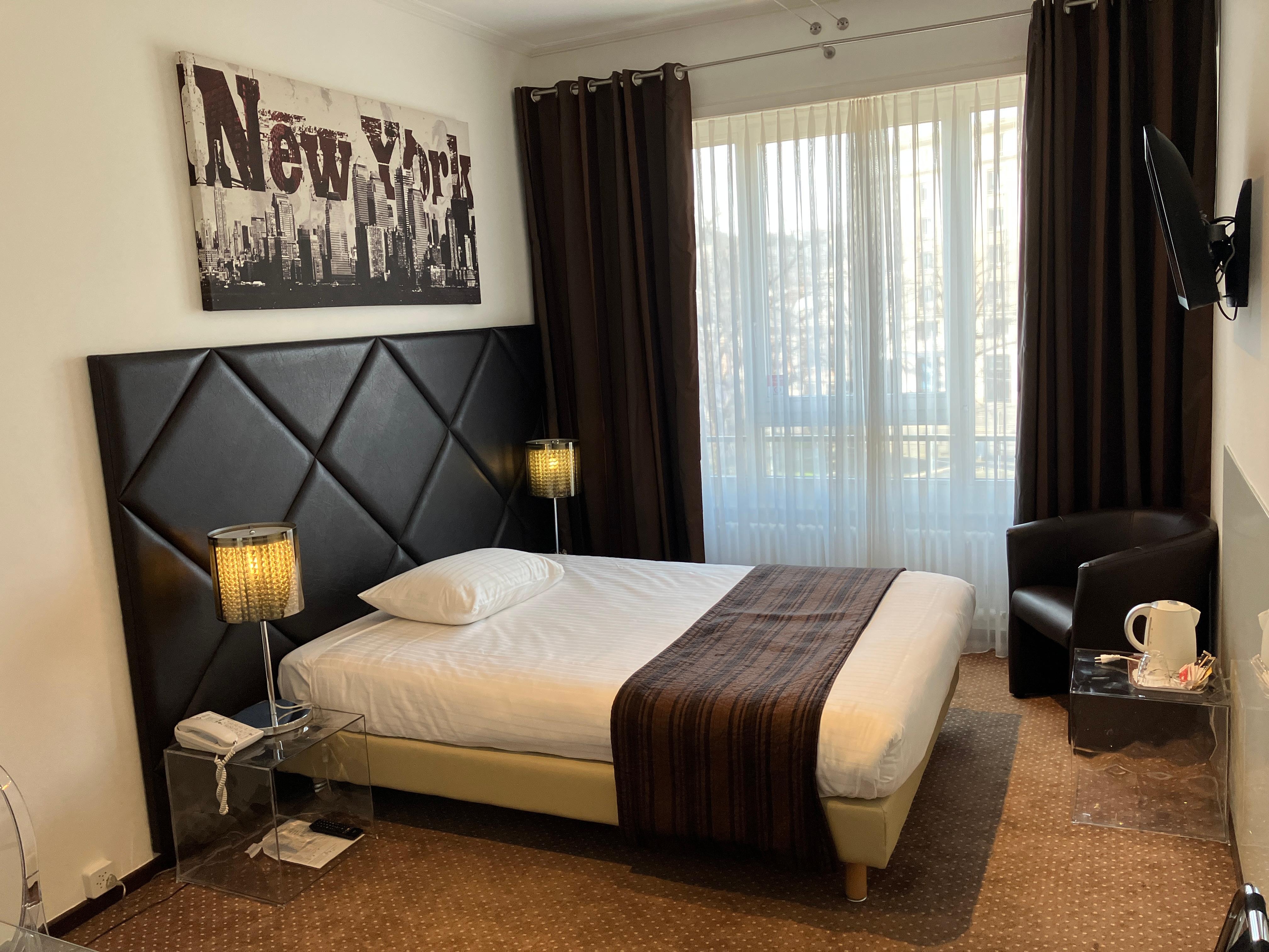 ジュネーブ市内に住む娘夫婦家族と会うための訪問で利用しました。ジュネーブは3回目ですがコルナヴァン駅近のホテルは初めてでした。鉄道やバス利用時も近く、駅周辺のお店は日曜日も置いているので利便性が高いです。客室はそれなりにスペースがとってあり、快適で満足です。特にシャワーブースが扉で完全に締まるタイプだったので、水はねを気にすることなく利用できました。またホテルの玄関ドアも自動でスムーズに出入りできました。総じて良いホテルだと思います。おすすめです。