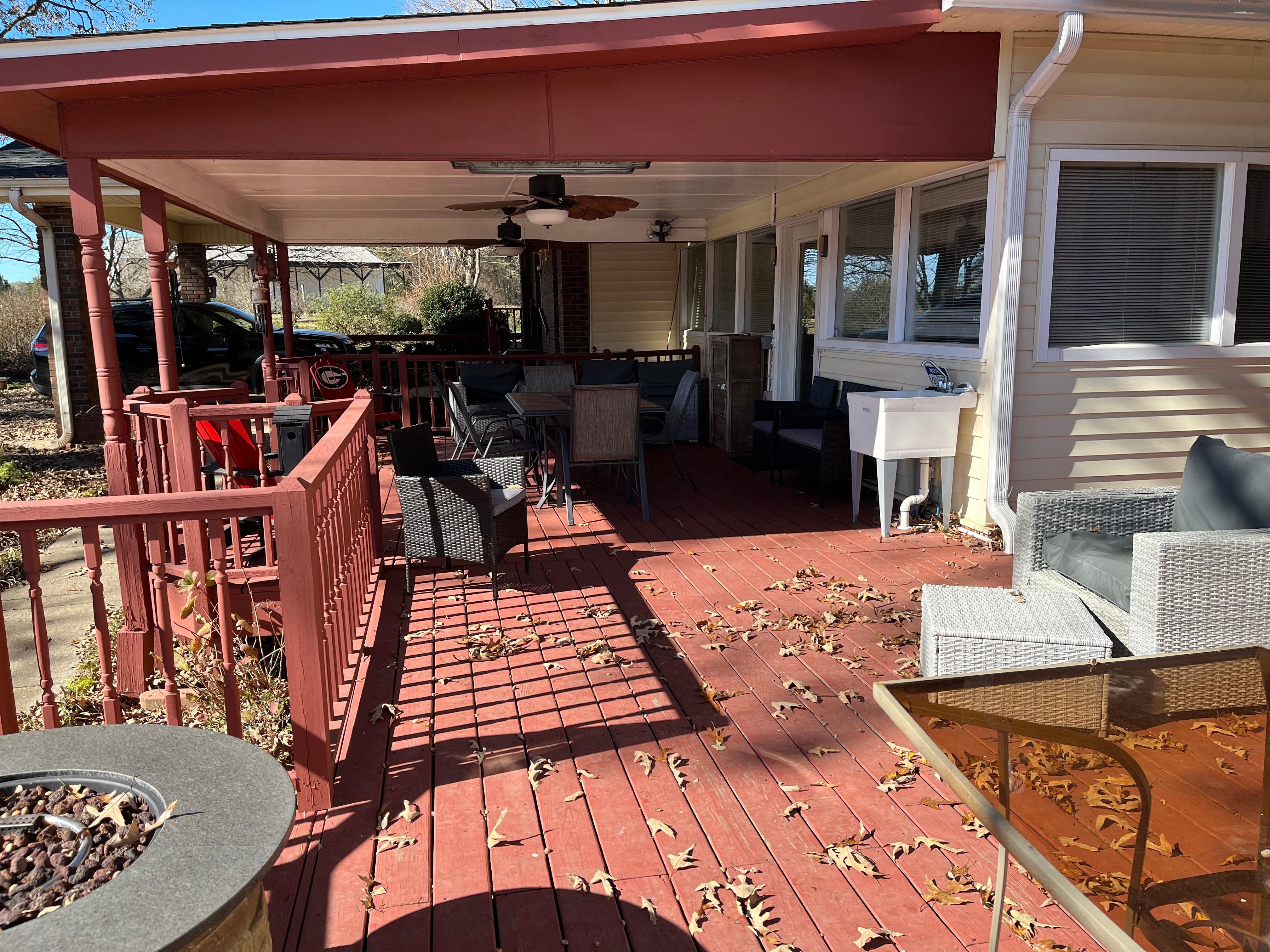 Sleeping arrangements include four comfortable bedrooms. The primary suite has a spacious and luxe en suite bathroom with a jetted tub, two vanities, and a walk-in shower. Gather around the firepit for some storytelling or surprise your loved ones with delicious grilled treats prepared on the gas grill. There is a covered outdoor dining area adjacent to the grill. You can easily access the private outdoor pool from the deck and enjoy a refreshing splash after a tasty meal.