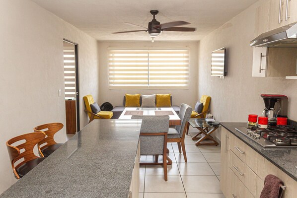 Brand new apartment, 2nd floor. Close to IMSS, new Civil Hospital, CUCS, medical, nursing and psychology schools. Quiet, secure condominium with elevator and assigned parking under roof.