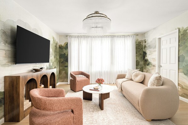 Living & Space Bright and spacious living area ideal for relaxing or gathering. Smart TVs in every bedroom.