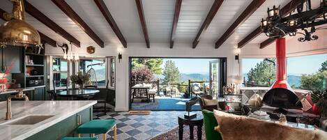Nestled in Idyllwild's mountains, Haven is an inspirational retreat. Immerse in nature while enjoying modern comforts like the outdoor heated cedar tub deck and epic views from the spacious living room.